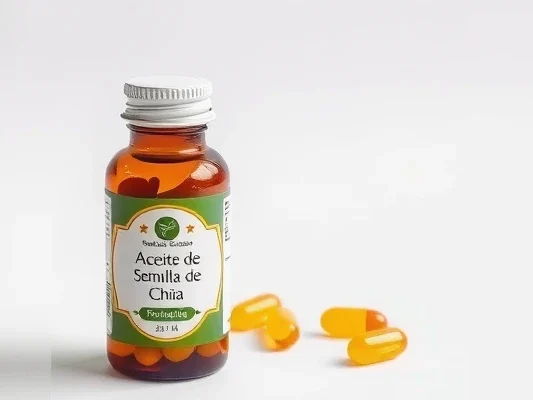 Cápsulas de aceite de semilla de chía con ácido alfa-linolénico (ALA). Sin colorantes ni conservantes.